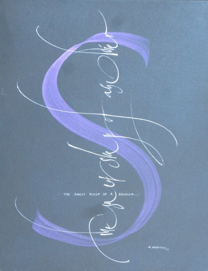 Richard has studied under many notable calligraphers. From Thomas Ingmire, he learnt to break from traditional with the introduction of Roman Cursive scripts. From Denis Brown, he gained specific skills on the stroke and where the stroke fits into a piece. From Yves Leterme, he learned how to move into gestural movements from known scripts (or a more common script) and from Brody Neuenschwander, he started to appreciate the whole broadsheet as one, which in some ways took him back to his studies with Thomas Ingmire.